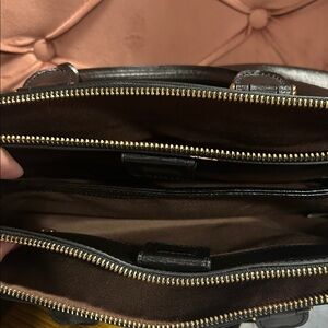 Sophisticated black handbag by Ralph Lauren. Textured finish with gold accents. Perfect for any occasion.