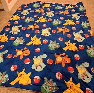 this is a very nice Pokémon bedding set. it comes with a full size comforter, fitted sheet,flat sheet and 2 standard size pillowcases. it is used but in excellent condition
