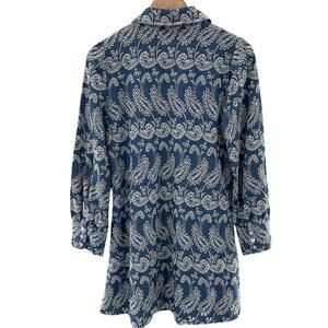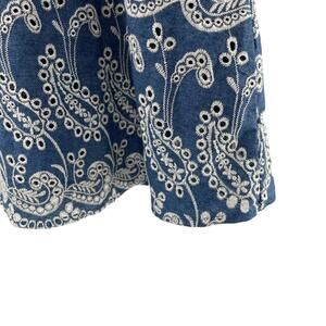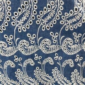 Zara Blue Paisley Floral Embroidered Shirt Dress Cutwork Embroidery Size Small