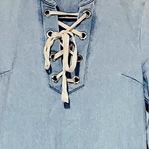 Sugar Lips Light Blue Denim Long Sleeve Mini Dress/Unfinished Hem/Tie Top/Size M