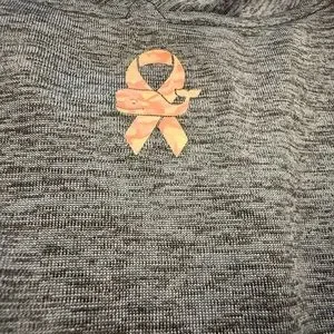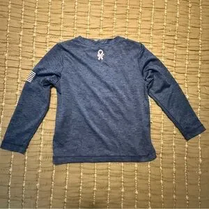 Heathered blue long sleeve tee with pink logo. Soft and comfortable for everyday wear.