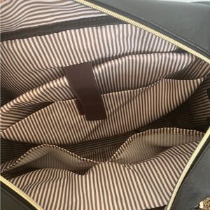 This is in excellent condition, was used for a very short period of time. Has removable shoulder strap, multiple zipper compartments, padded laptop compartmentand USB Port. Holds up to a 17” laptop computer. No flaws, in excellent condition.