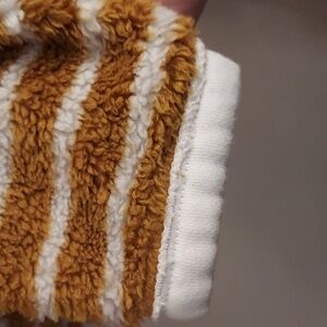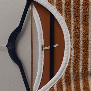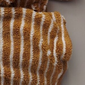 Cozy up in this stylish striped sweater, featuring a warm brown and white design. Perfect for casual outings or relaxing at home.