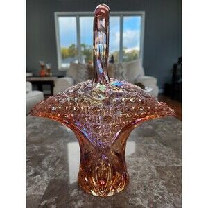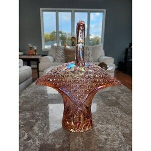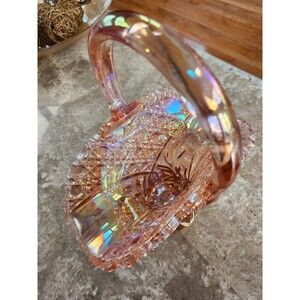 Vintage L.E.Smith Carnival Glass Pink Bride's Basket Vase, 12"