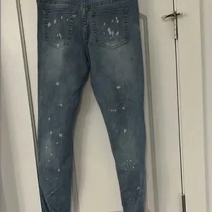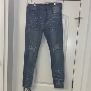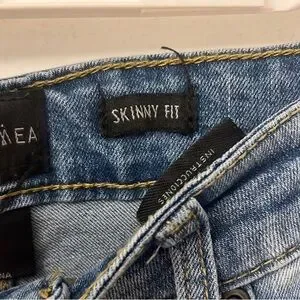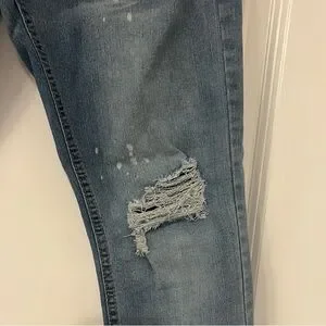 Upgrade your wardrobe with these stylish distressed skinny jeans. Featuring a classic blue hue, they offer a sleek and modern fit perfect for any casual outing.