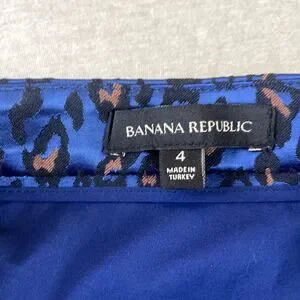 This stylish Banana Republic skirt features a striking blue and black leopard print.