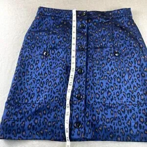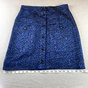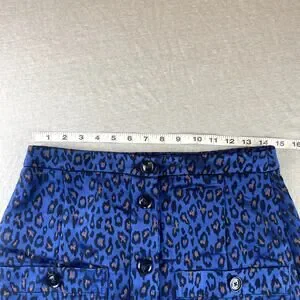 Banana Republic Blue & Black Leopard Print Skirt 4 Button Down Front Pockets