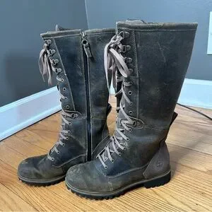 Sturdy lace-up boots with side zippers. Distressed style.