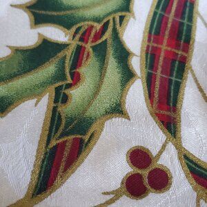 NOS Vtg Lenox Shower Curtain Holiday Joy Hollie Berries Plaid Reinforced Grommet