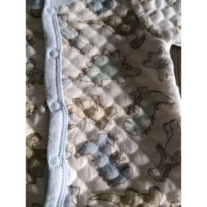 Little Beginnings Quilted 1 Piece Sleeper 3-6 Months off white w/ dinosaur print, gently worn - no rips tears or stains.some slight pilling. Snap closure. Please see pics for details. Any questions please let me know.