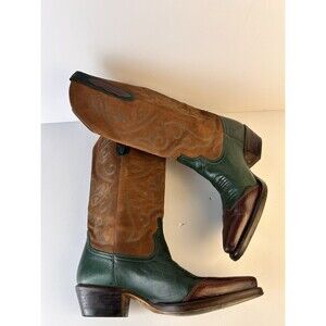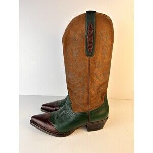 Nine West Vintage Women 7 Western Boots Used Green And Camel Cowgirl