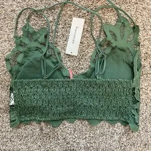 Elegant sage lace bralette with delicate floral patterns. Perfect for layering.