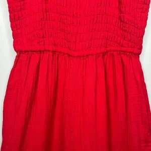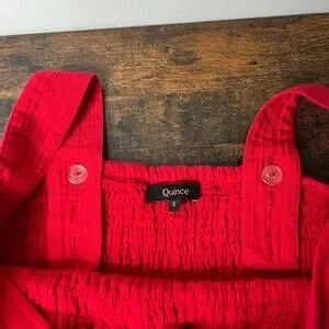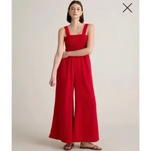 Quince Women's Organic Cotton Gauze Smocked Wide Leg Jumpsuit Cherry Red Sz S