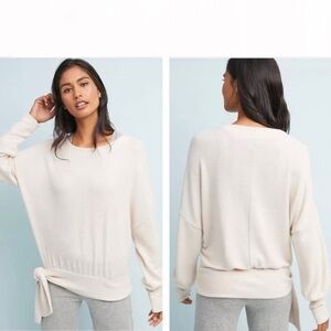 Saturday Sunday Anthropologie Payton Brushed Fleece Pink Side Tie Sweater size S