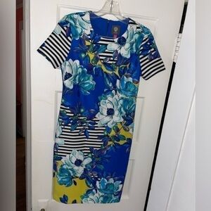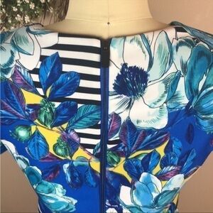 VINCE CAMUTO Women’s Blue Floral & Striped Midi Dress - Size 2