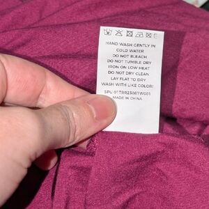 Pink, floral embroidery at neck and cuffs, long sleeve, tie at neck, tunic