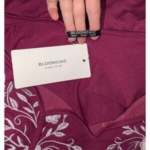NWT Bloomchic Tunic 26 Women's Pink Embroidered Long Sleeve Tie Neck Stretch