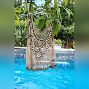 W118 BY WALTER BAKER SHEER BEADED STUNNING ART DECO TOP WOMEN'S Sz M