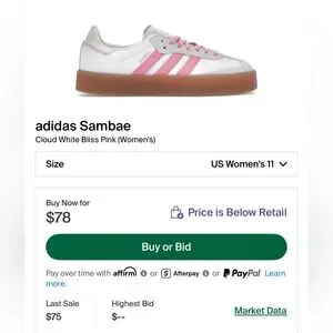 Adidas Sambae ‘Cloud White Pink Bliss’ Sz 11W/10M