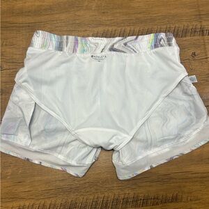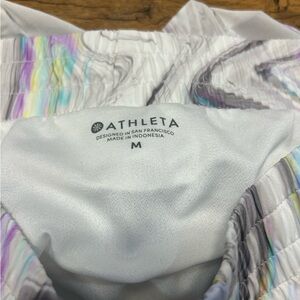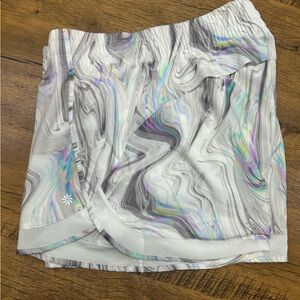 Athleta Mesh Racer Run Short in the "Iridescent Marble Glitch Rainbow" M