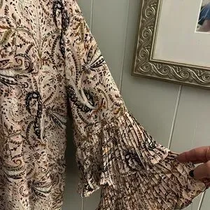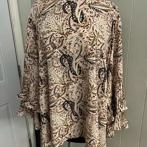 Discover elegance with this paisley print women's blouse. The cream and black design adds a touch of sophistication to any outfit. Perfect for both casual and formal occasions.