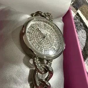 Badgley Mischka rhinestone Silver Chain Watch