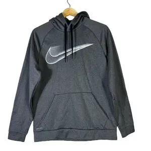 Nike Dri-Fit Hoodie Mens M Gray Swoosh Pullover Athletic Logo Sportswear Gym