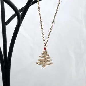2/$20 Gold Tone Holiday/Christmas Tree Pendant Necklace