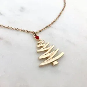 Gorgeous gold tone xmas tree pendant necklace with pretty red rhinestone.