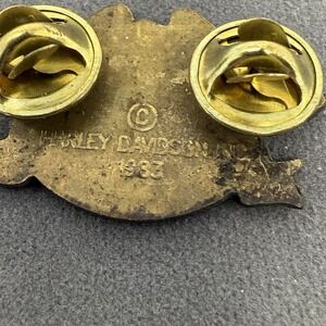 The product is a rare and limited edition Harley Davidson vintage pin badge from the Owners Group (HOG) dating back to 1983. Made in the United States by Harley-Davidson, this collectible item features the iconic Harley-Davidson logo and is a sought-after piece for motorcycle enthusiasts and collectors. The pin badge is a unique and nostalgic item representing the brand's history and tradition in the American motorcycle industry.