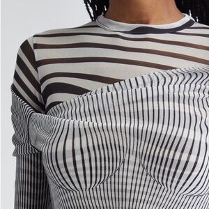 NEW Jean Paul Gaultier Body Morphing Mesh Black and White Sheer Bodysuit NWOT