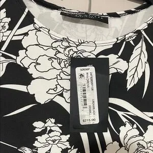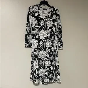 Chic floral dress with long sleeves. Features a striking black and white design. Perfect for any occasion. Both the dress and pants are a size XXS.
