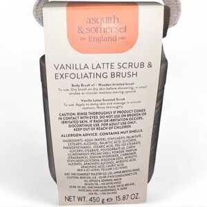 Brand new Asquith & Somerset “I Scrub You a Latte” Vanilla Latte Scrub & Exfoliating Brush set.