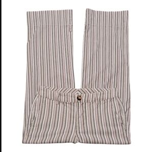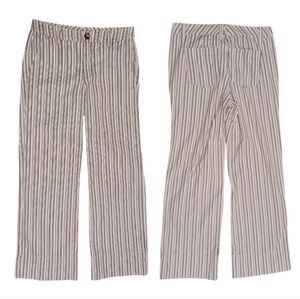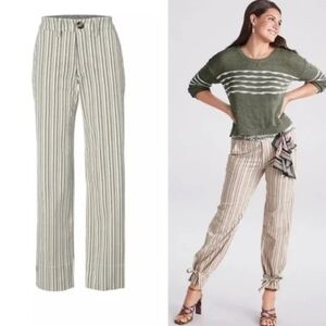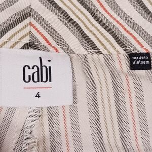 CAbi Convertible Trouser Pants, Size 4. Pattern: Island Stripe. 54% Lyocell, 34% cotton, 3% spandex. Machine washable.