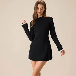 This eye-catching dress features contrasting details that add a touch of modern flair to a classic silhouette. With long sleeves and a sleek mini length, it offers both comfort and style. This Mini Dress is made of Viscose. Viscose (aka rayon) is a man-made cellulosic fiber made from wood pulp. It's soft, breathable, durable, and moisture-wicking.