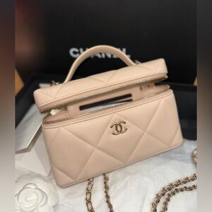 CHANEL LP Vanity Top Handle w Chain in Beige Caviar