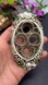 Stunning vintage antique toned white enamel floral lipstick holder by Florenza 4.25 inches long 2.25 inches wide 1 inch tall.
