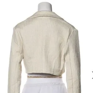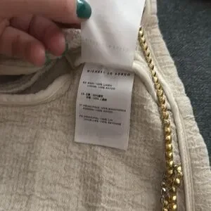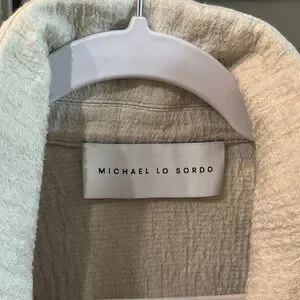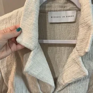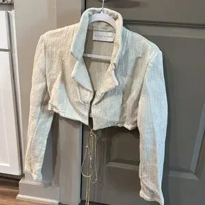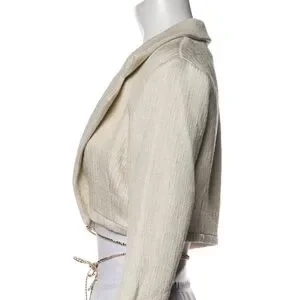 EUC with a flaw. Size 4 Michael Lo Sordo linen jacket. Worn 2 times. Deep neck and ties around body. Cream color with bronze beading