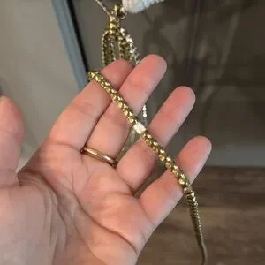 One of the beads detached from the waist tie! Ask all questions before buying. May be able to fix the issue with the right type of bead or something similar. Should not be too noticeable when wearing.