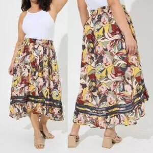 Torrid Plus Maxi Crinkle Gauze Hi-Low Pull On Colorful Floral Midi Maxi Skirt