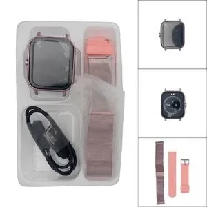 ๐ Track your fitness and stay stylish with this modern smartwatch! Featuring a square touchscreen, it monitors your heart rate, steps, and sleep while delivering notifications from your phone. Ideal for gym sessions, office wear, or everyday adventures. Comes with a comfortable mesh band and USB charger โ pick your color: rose gold with pink, gold with beige, or black with black for that perfect vibe!