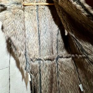 Elegant vest with faux fur trim/ lining. Ideal for layering. Adds sophistication to any look. The color is more of a taupe, see last photo for accurate color. Excellent condition.