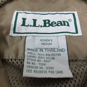 L.L. Bean Parka Coat Womens M Beige Long Sleeve Windbreaker Hooded Snap Full Zip
