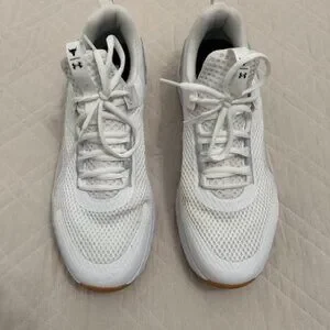 Size 11. Under Armour, Dwayne Rock Johnson clothing line. White color and in excellent condition.
