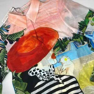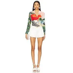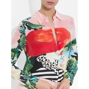 Alice + Olivia Willa Palm Beach Silk Blouse Medium NWT $350