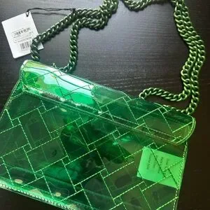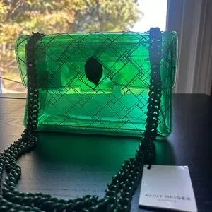 Stylish Kurt Geiger bag in a striking emerald shade. Features a unique chain strap. Perfect for any occasion.