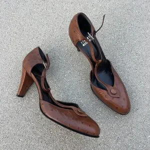 Brown Ostrich Skin Leather Heels by Stuart Weitzman