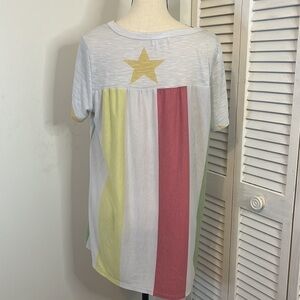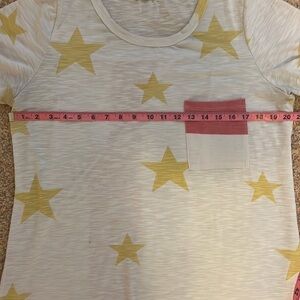 Hopely Boutique Star Rainbow Print Short Sleeved Tee Shirt with Front Pocket