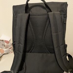 no removable shelving insert. interior clear pocket needs to be wiped down. exterior in great used condition.