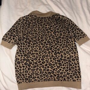 Anthropologie Tan and Black Leopard V-Neck Sweater